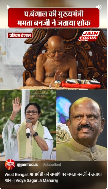 West Bengal:आचार्यश्री की समाधि पर ममता बनर्जी ने जताया शोक | Vidya Sagar Ji Maharaj Post navigation Mahasagar Ji Maharaj: गुरुदेव के बताए मंत्रों में छिपा है जीवन का सार | Jain Focus Rupesh Jain:25 फरवरी को धर्मतीर्थ में होगा भव्य आयोजन | JAIN FOCUS
